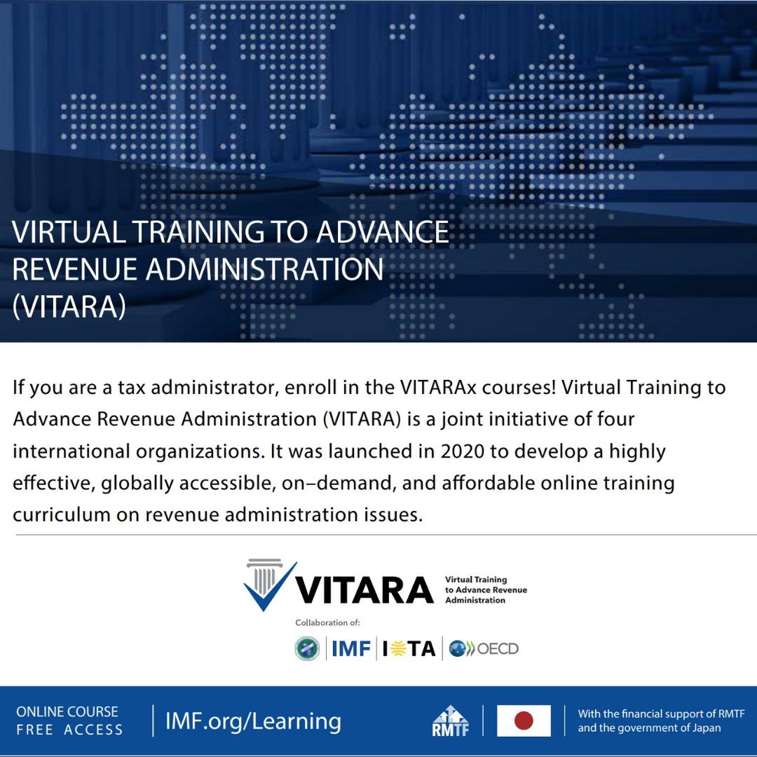 VITARA stands for Virtual Training to Advance Revenue Administration, and is a joint initiative of four organisations, Inter-American Center of Tax Administrations (CIAT), Intra-European Organisation of Tax Administrations (IOTA), International Monetary Fund (IMF), and Organisation for Economic Co-operation and Development (OECD). It was launched in 2020 to develop a highly effective, globally accessible, on-demand and free online curriculum on revenue administrative issues. The VITARA modules are introductory level modules and designed for busy professionals who wish to improve their skills in tax administration. Find out more about VITARA Courses by visiting the dedicated VITARA page on the IOTA website.