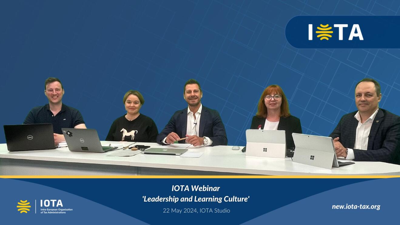 On May 22, 2024, IOTA successfully carried out an impressive digital event from its annual Work Programme Activity calendar. The IOTA Webinar ‘Leadership and Learning Culture’ was attended by over 115 participants from 26 IOTA member tax administrations in the virtual space and was broadcast live from the IOTA Studio in Budapest, Hungary. We had the pleasure of having three speakers present in the studio: Jana Lokka-Palomaki from Finland, Michael Vindevoghel from Belgium, and Fabio Forzini from Italy, while Panagiotis Ballas from Greece joined us online.